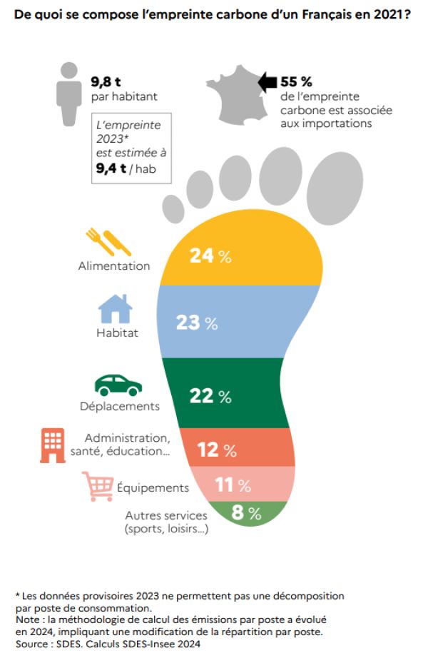 - Alimentation : 2,3 tonnes de CO₂ (soit 24 %)